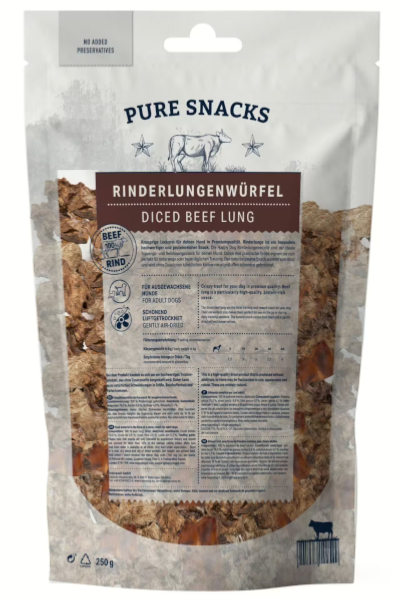 Les cubes de poumon de bœuf Happy Dog sont la friandise idéale pour l'entraînement de votre chien et comme récompense entre les repas. Composées à 100 % de poumon de bœuf naturel, ces friandises saines sont séchées à l'air libre et conditionnées sans additifs artificiels.