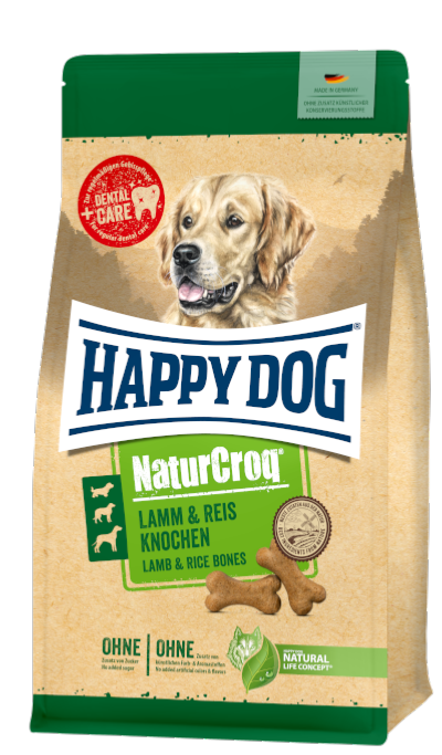 Pour un premier essai, nous vous recommandons nos Biscuits Os Naturcroq à l'agneau et au riz en paquet de 500g.