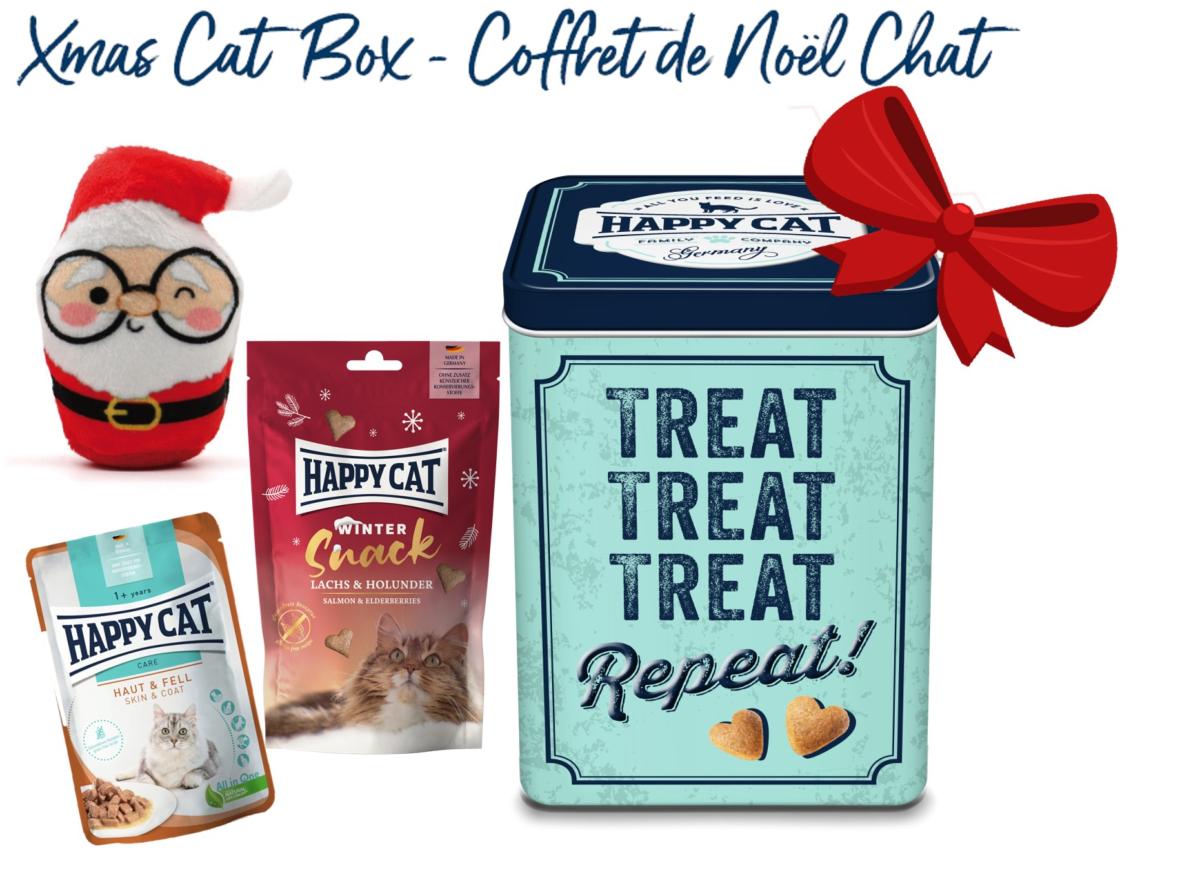 Vous êtes à la recherche du cadeau de Noël parfait pour votre chat ? Ne cherchez plus, nous vous avons concocté le Coffret de Noël Happy Cat pour choyer vos boules de poils comme il se doit. Vous pourrez vous dorlotez au coin du feu, avec chacun vos propres biscuits de Noël. Grâce à cette box de Noël, votre chat pourra lui aussi avoir sa friandise quotidienne de l'avent, son repas de viande pour le dîner de Noël, et bien sûr son jouet sous le sapin.
